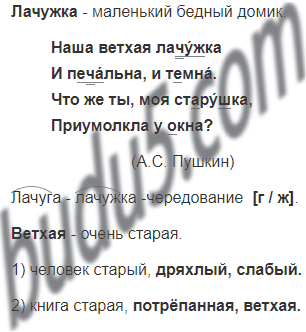Открой учебник. Проверь написанное. Какие согласные чередуются в корне слов лачуга и лачужка? Что означает слово ветхая? А как можно сказать по-другому? Продолжи ряд слов: