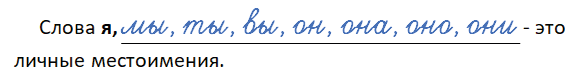 Слова я, мы, ты, вы, он, она, оно, они - это личные местоимения.