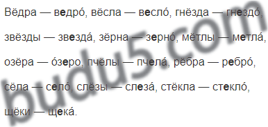 Вёдра — ведро, вёсла, гнёзда, звёзды, зёрна, мётлы, озёра, пчёлы, рёбра, сёла, слёзы, стёкла, щёки.