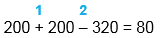 1) 200 + 200 = 400 2) 400 - 320 = 80 |