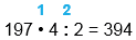 197 • 4 : 2 = 394