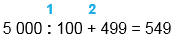 5 000 : 100 + 499 = 549