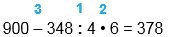 900 - 348 : 4 • 6 = 378
