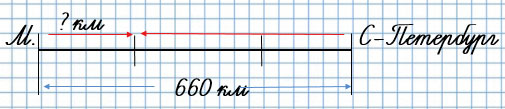 Весь путь - 3 части, это 660 км. Узнаем, чему равна 1 часть пути, которая и будет равна расстоянию от Москвы до места встречи поездов: