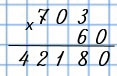703 • 60 - это число 703, которое умножили на 6 десятков, поэтому умножим 703 на 6, а затем допишем к произведению справа ноль.