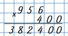 Пишу: 956 • 400. 956 • 400 - это число 956, которое умножили на 4 сотни, поэтому умножим 956 на 4, затем допишем к произведению справа два нуля.