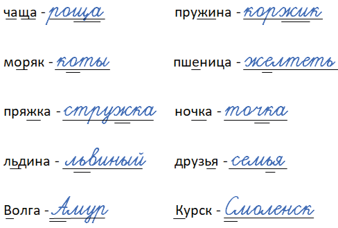 • Рядом с каждым словом запишите слово с орфограммой на это же правило.