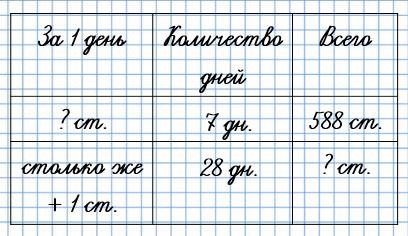 1) 588 : 7 = 84 (ст.) - за 1 день.