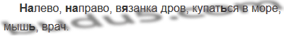 (На)лево, (на)право, в..занка дров, купат(?)ся в море, мыш(?), врач(?).