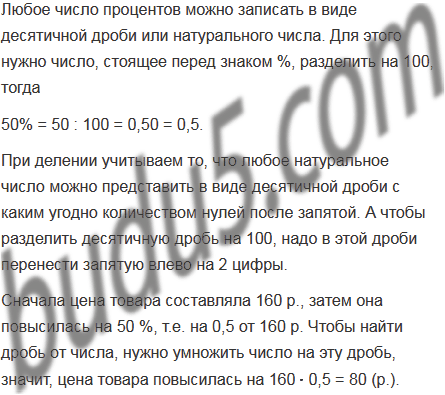 Цена товара дважды повышалась и каждый раз на 50%. Какой стала цена товара, если сначала она составляла 160 р.?