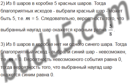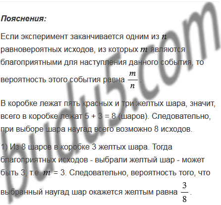 В коробке лежат пять красных и три желтых шара. Какова вероятность того, что выбранный наугад шар окажется: