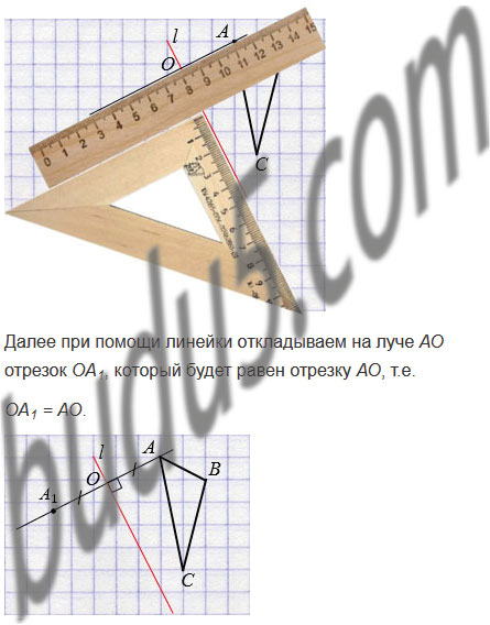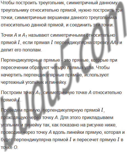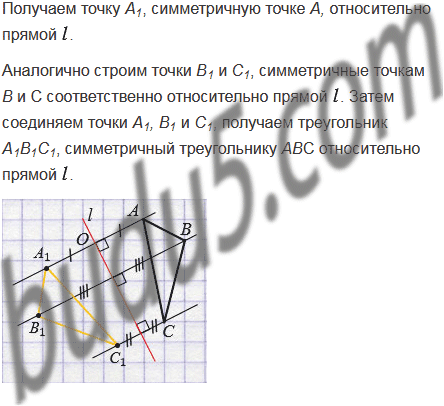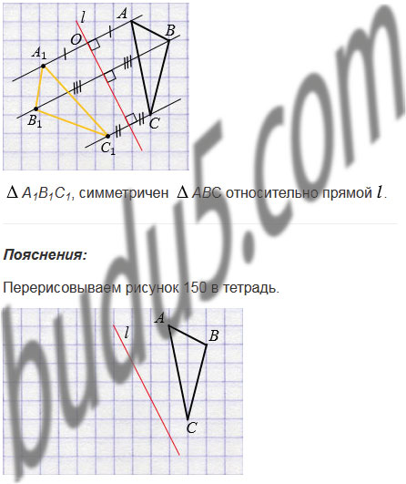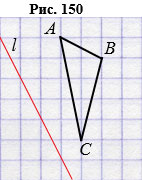 Перерисуйте рисунок 150 в тетрадь и постройте треугольник, симметричный треугольнику АВС относительно прямой .