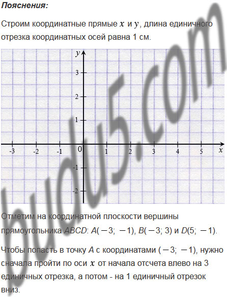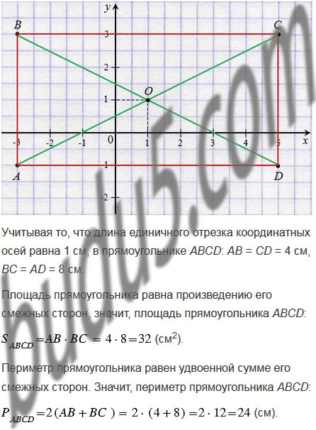 4) Вычислите площадь и периметр прямоугольника, считая, что длина единичного отрезка координатных осей равна 1 см.