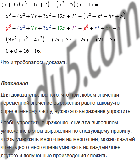Докажите, что при любом значении переменной значение выражения равно 16.
