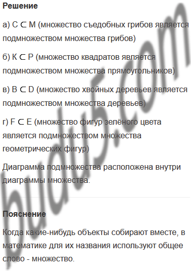 Задание № 2. Задай свойством множества, изображённые на рисунках. Какое из них является подмножеством другого? Сделай записи.