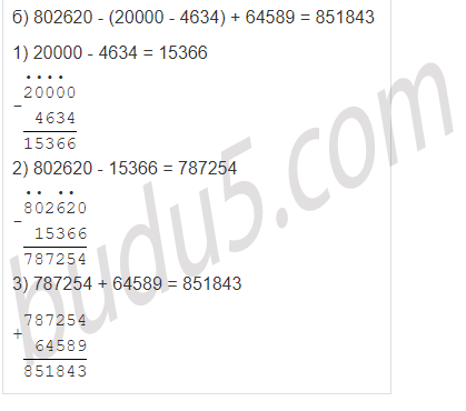 | б) 802620 - (20000 - 4634) + 64589 |