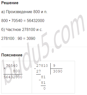 | а) 800 • n, если n = 70540 | б) 278100 : с, если с = 90 |