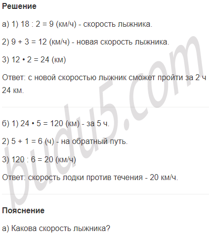 а) Лыжник прошёл 18 км за 2 часа. Какое расстояние он пройдёт за такое же время, если увеличит скорость на 3 км/ч?
