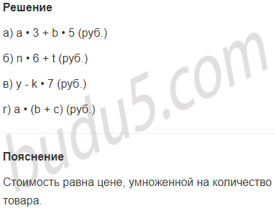 г) Цена дыни а руб. за килограмм. Папа купил 2 дыни: одна массой b кг, а вторая массой с кг. Сколько денег он заплатил?