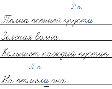 • Укажите падеж имён существительных 3-го склонения. Допишите пропущенные окончания.