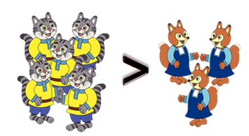 Котиков больше, чем лисичек.