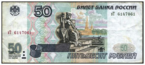 Самая маленькая купюра достоинством 50 рублей.