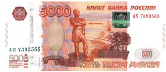 И три самые крупные купюры - 1000 рублей, 2000 рублей и 5000 рублей.